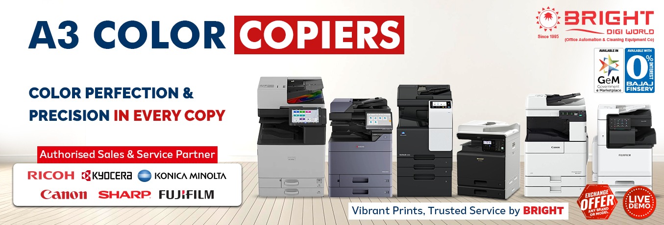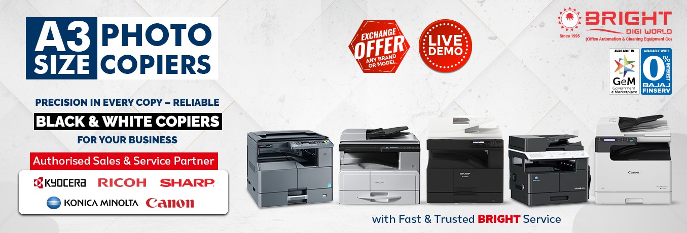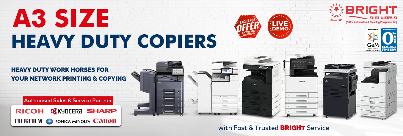A3 Black & White photocopiers, Color Photocopiers, Inktank Printers, Laser Printers, ID card Printers & Production Printers, A0 Size Engineering plan printers