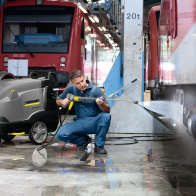 User-friendly, powerful hot water high-pressure cleaner with 4-pole, water-cooled electric motor, economical eco!efficiency mode and 2 detergent tanks.